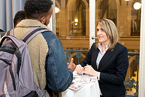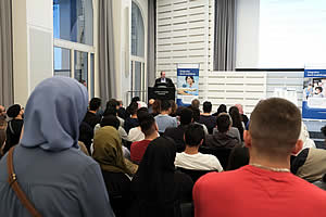 Gripp vom Arbeitgeber-Service informiert Teilnehmende nach dem offiziellen Teil